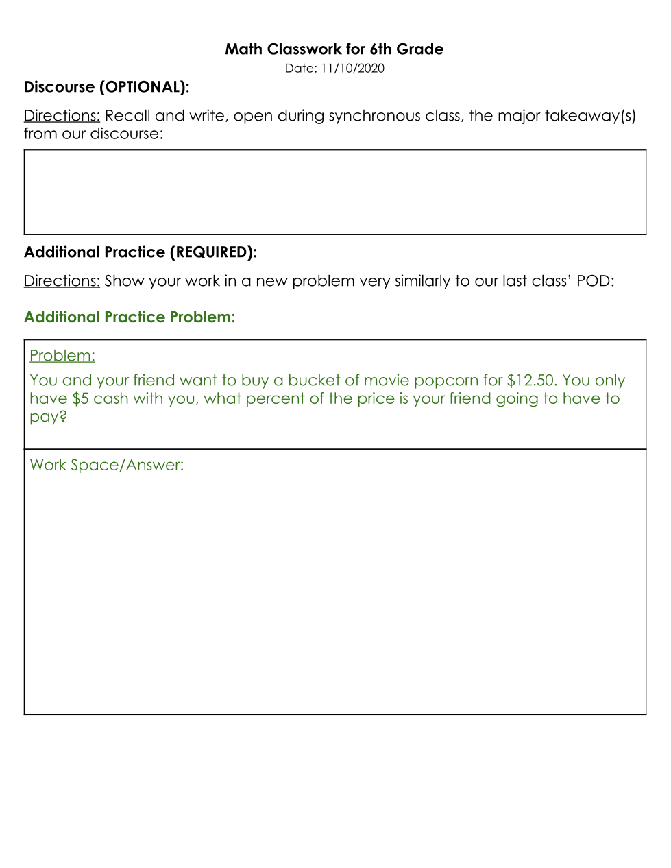 You and your friend want to buy a bucket of movie popcorn for $12.50. You only have $5 cash with you, what percent of the price is your friend going to have to pay?