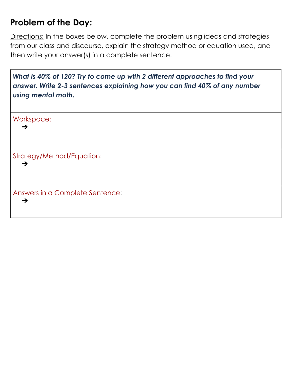 What is 40% of 120? Try to come up with 2 different approaches to find your answer.