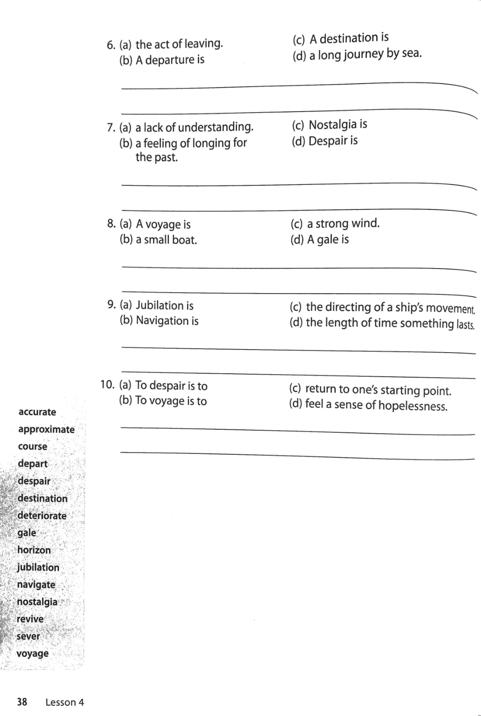 Match the vocabulary term to its correct definition. Write out the whole sentence---(a) (b) will not be accepted.