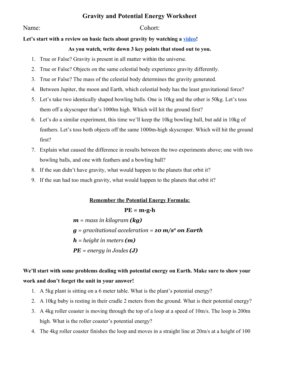 What is the roller coaster’s potential energy? Make sure to show calculations/equations.