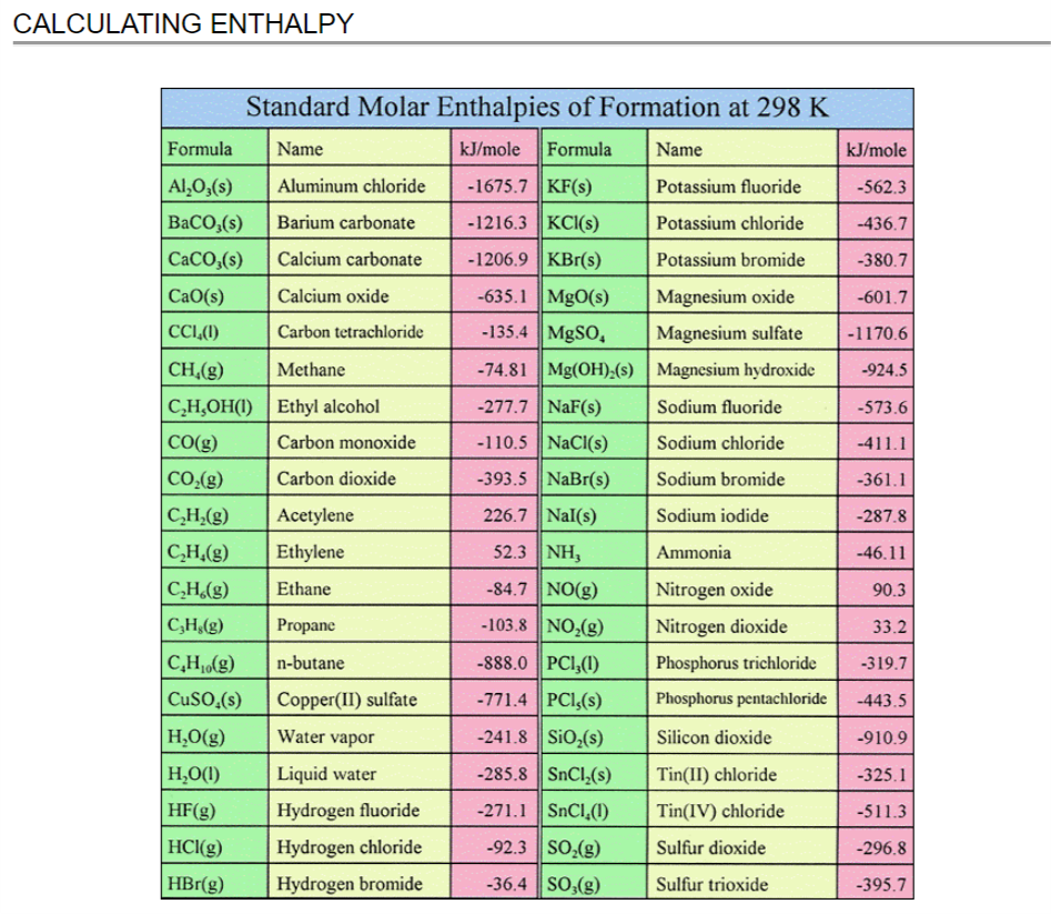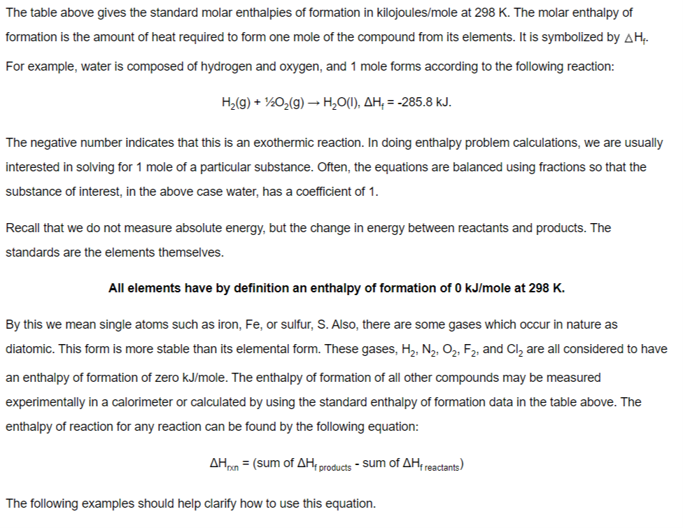 Kelso High-Chem H-Enthalpy of Reactions