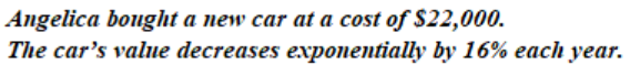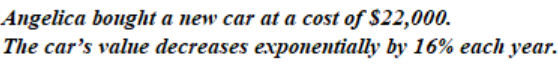 Wake County Public School System gave teachers a bonus and I decided to buy myself a new car! As you know, the value of a car depreciates as soon as you drive it off the lot. If I pay $38,500.00 for my car, and the car's value depreciates at a rate of 4% each year, then write an equation to model the value of this car over time, where v is the value of the car and n is the number of years since I purchased the car.