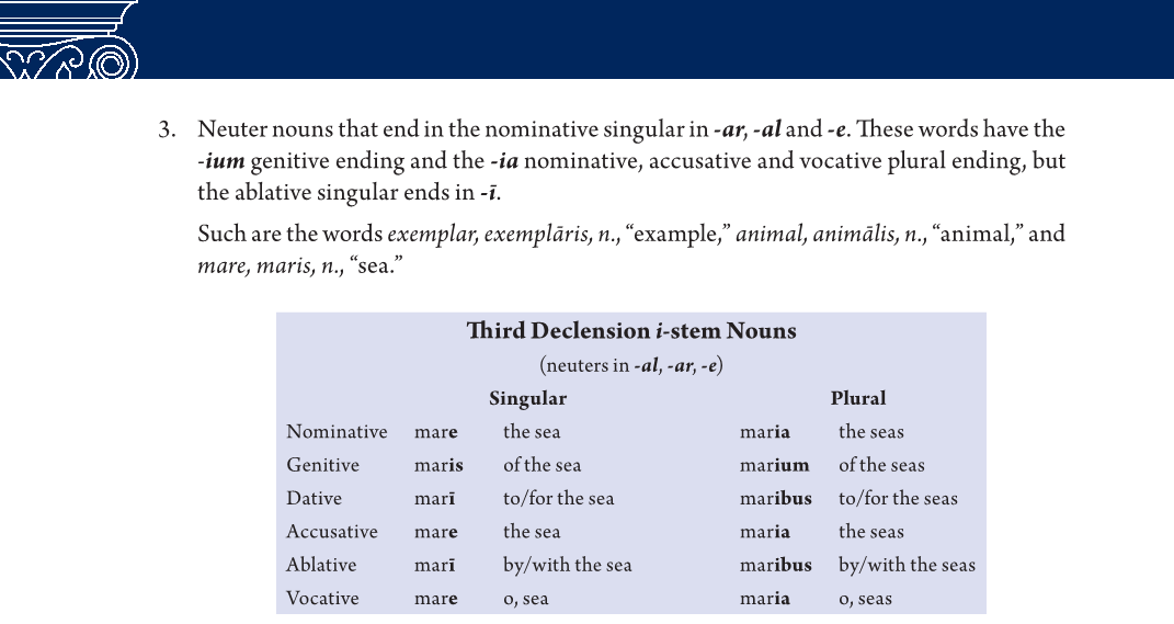 Which of the following do NOT have the same endings for neuter i–stem nouns?
