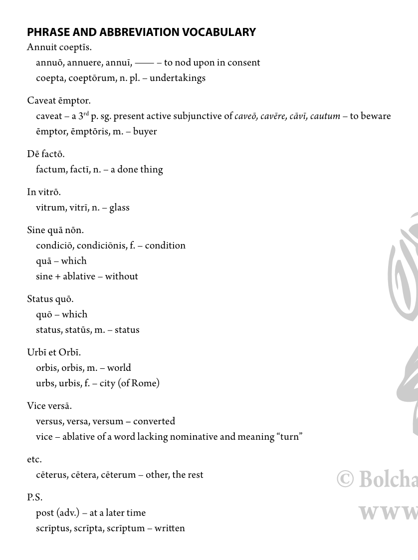etc. An abbreviation for et cētera | arrow_right_alt | “Let (may) the buyer beware!” |