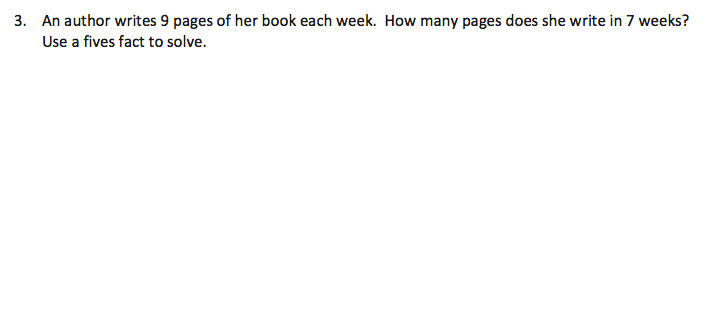 An author writes 9 pages of her book each week. How many pages does she write in 7 weeks?
