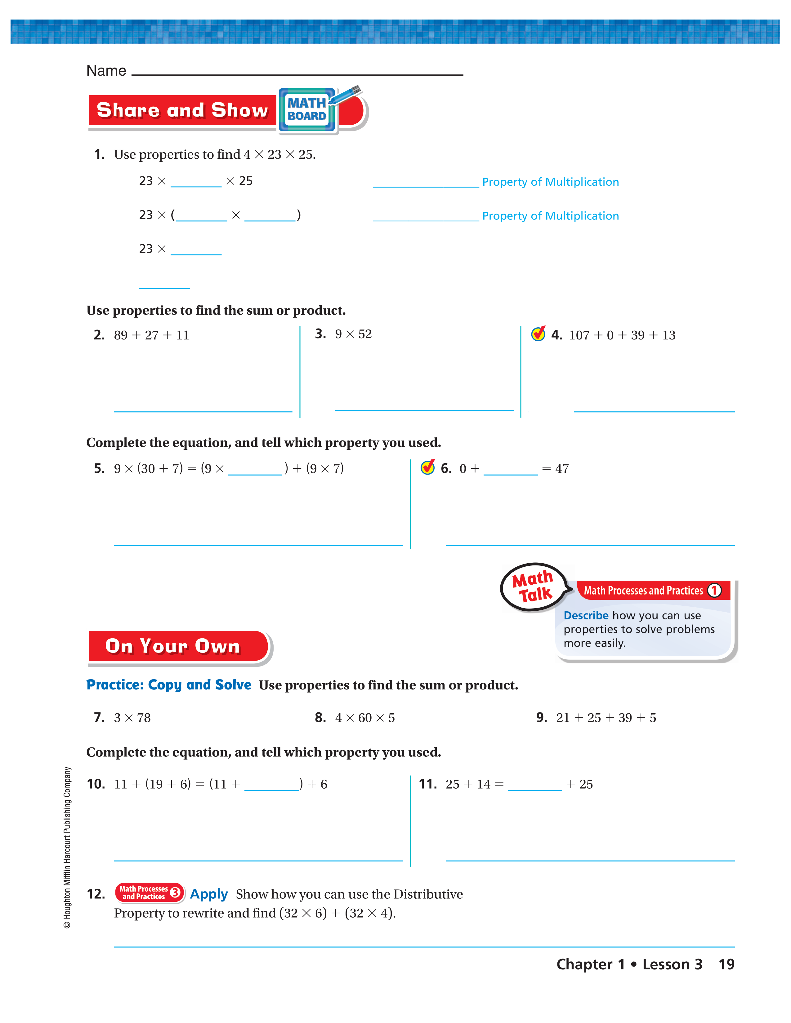 9 x (30 +7) = ( 9 x ____) + (9 x 7)Tell which property you used in the "Show Your Work" section
