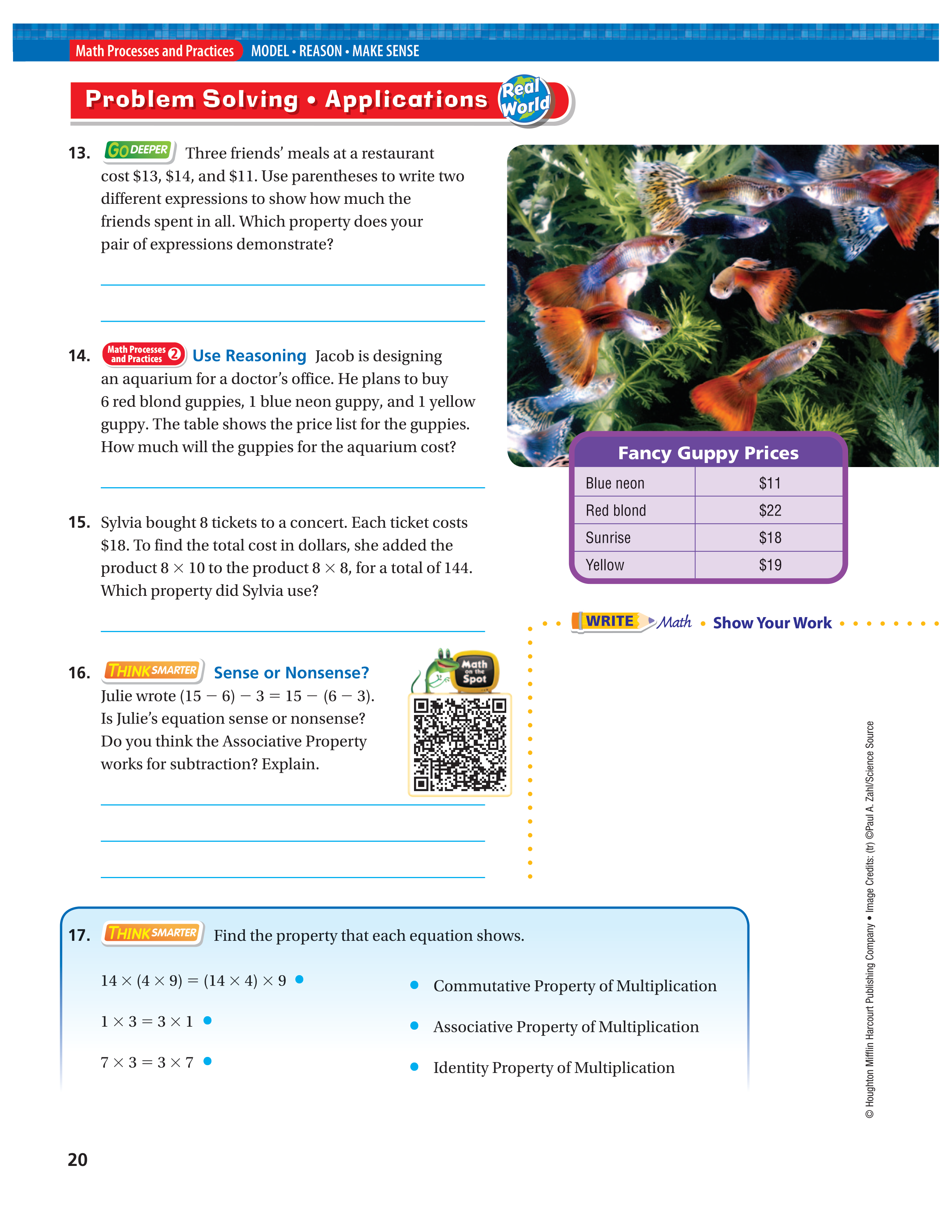 Julie wrote (15 − 6) − 3 = 15 − (6 − 3). Is Julie’s equation sense or nonsense? Do you think the Associative Property works for subtraction? Explain.