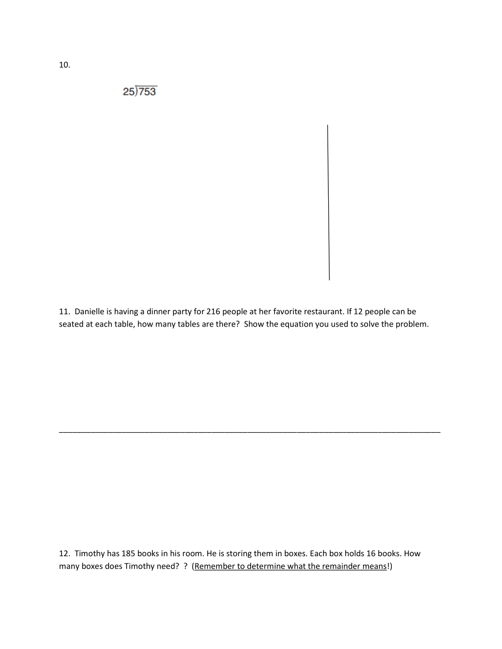 Timothy has 185 books in his room. He is storing them in boxes. Each box holds 16 books. How many boxes does Timothy need? ? (Remember to determine what the remainder means!)