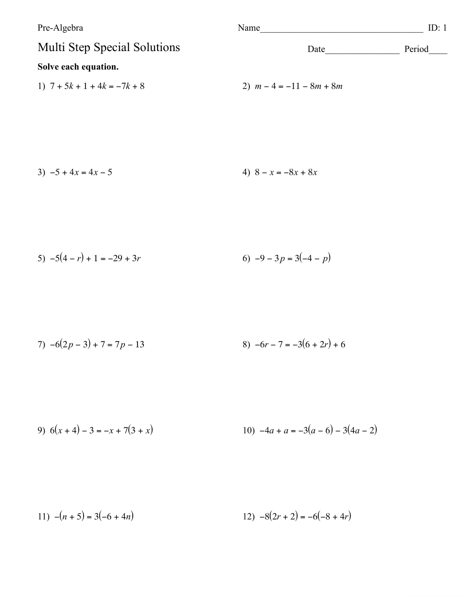 MultiStep Equations Special Solutions