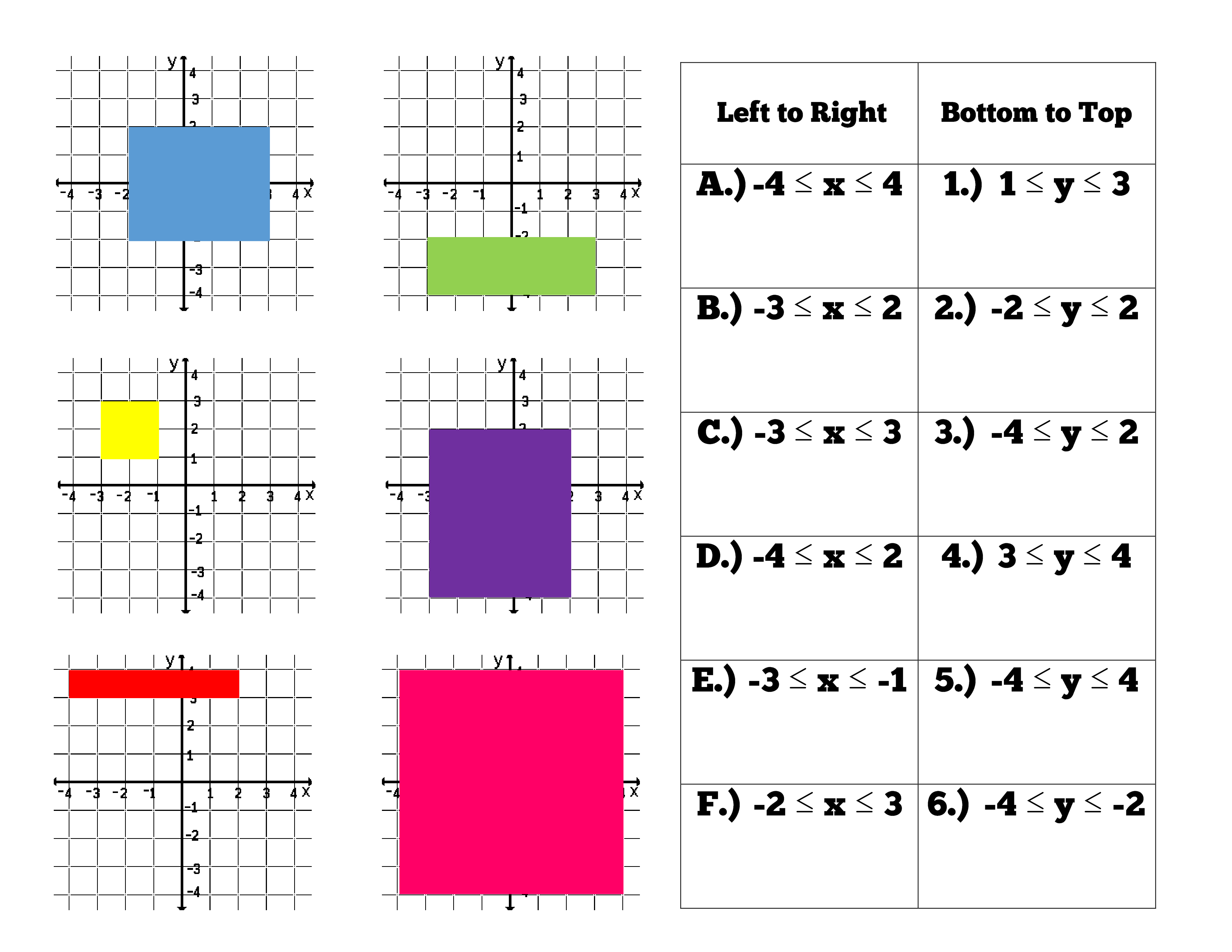Match the domain and then the range. Use a comma and no spaces between answers.