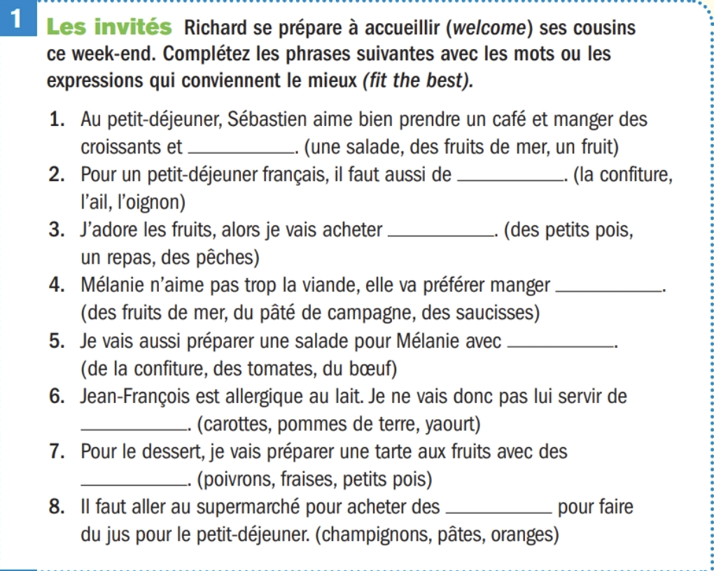 vocabulaire pp. 30-31 et: Cette liste + les diapos (slides) ci-dessous (below):