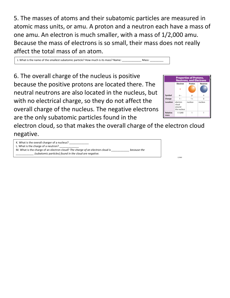 What two subatomic particles are located in the nucleus? (1 point)
