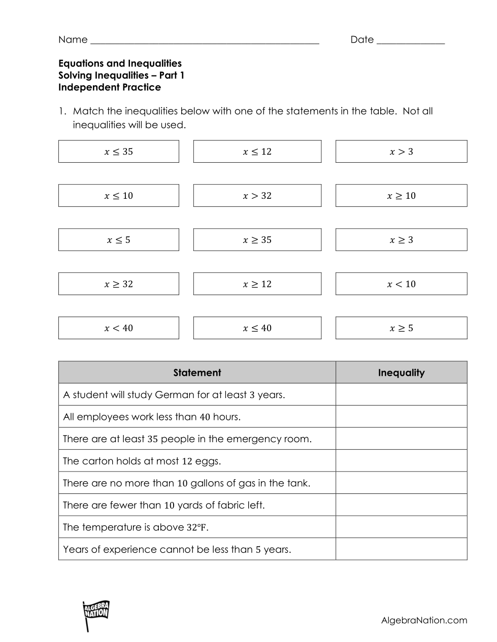 11/13 Section 2 Topics 5,6 Solve Inequalities