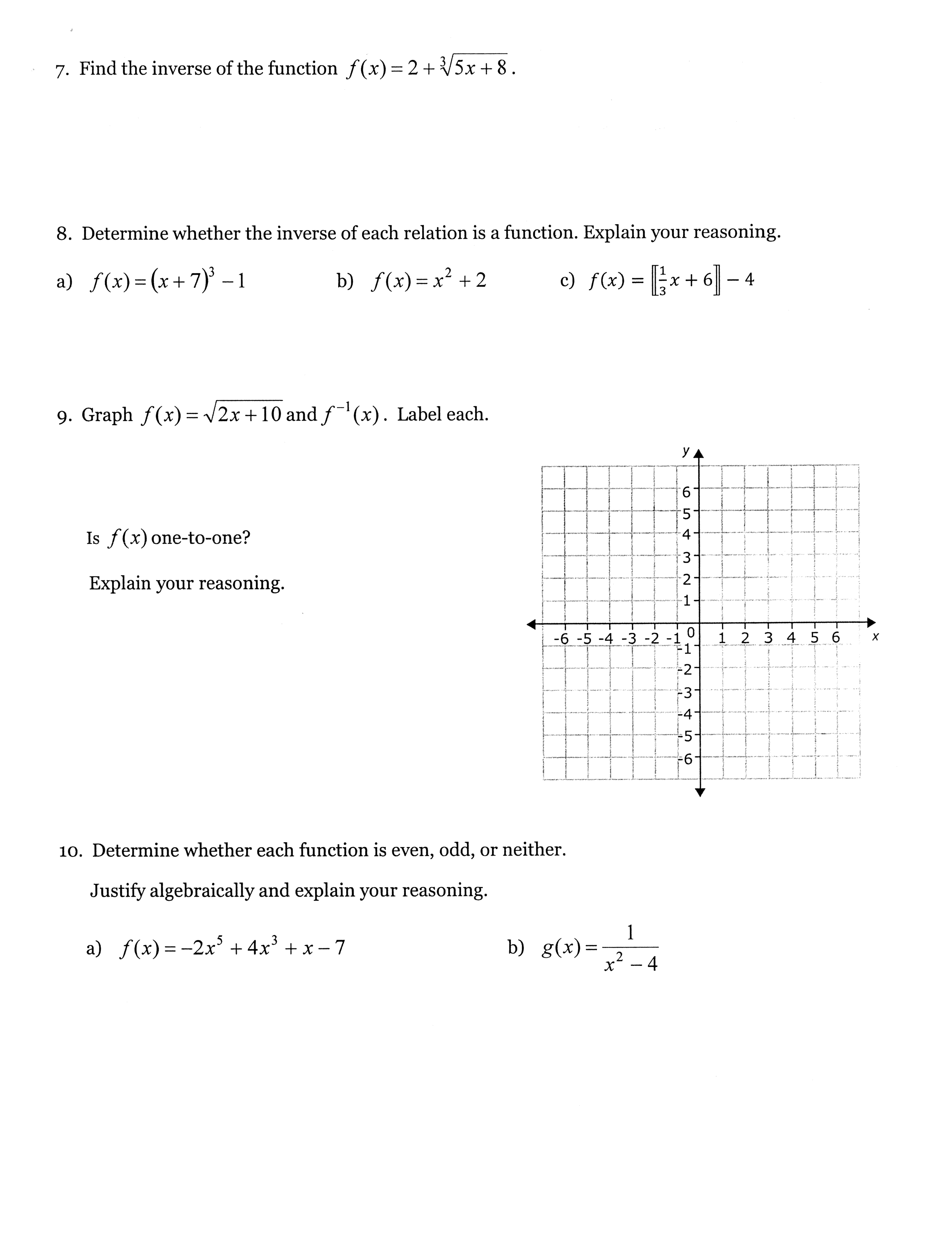 a) Determine whether the inverse of f(x) is a function. Explain your reasoning.