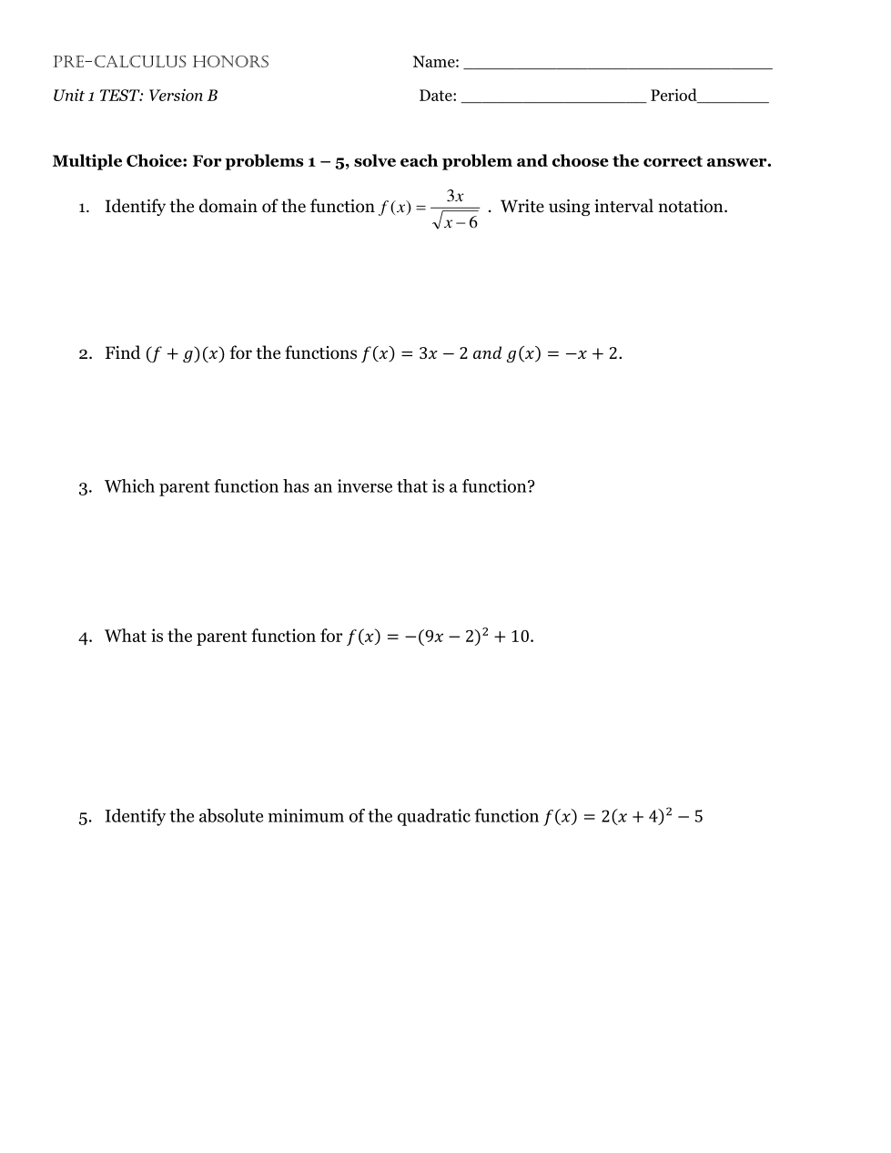 HPC Unit 1 Test Version B