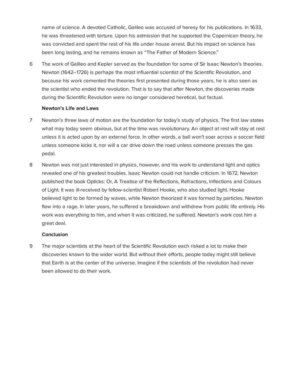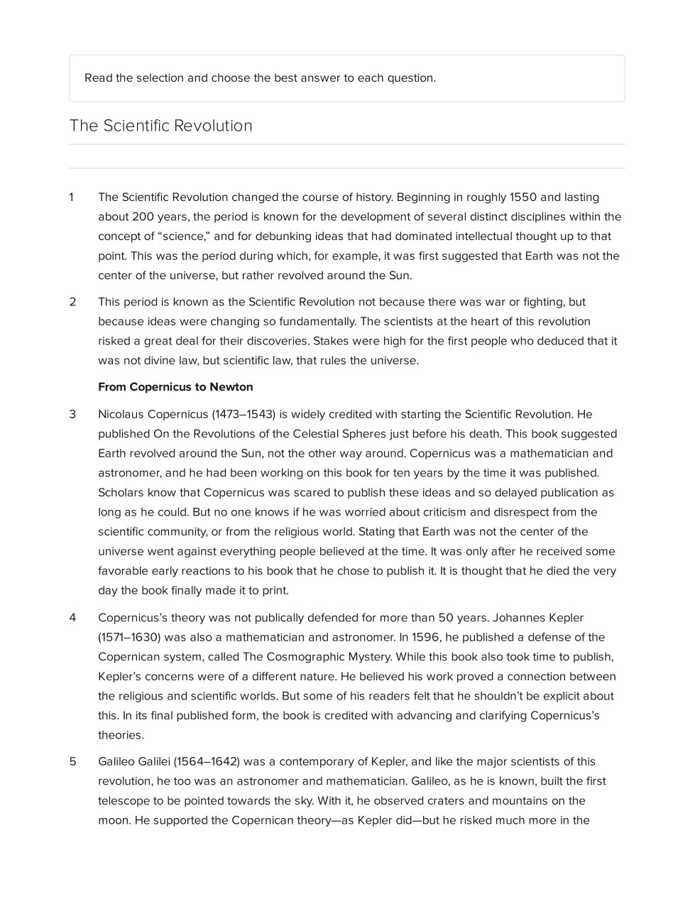 The section headers in the selection emphasize the idea that the Scientific Revolution —