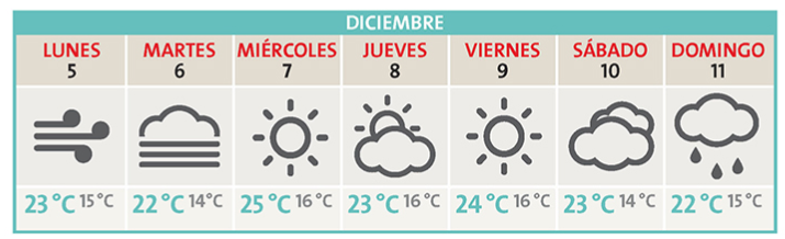 (HACER - Ha hecho sol, ha hecho frio, ha hecho calor, ESTAR - ha estado nublado, HABER - ha habido niebla, LLOVER - ha llovido, NEVAR - ha nevado)