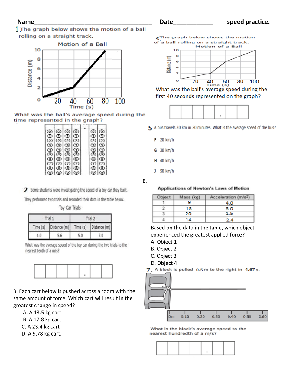 Ablock is pulled 0.5 m to the right in 4.67 s.what is the ball average speed to the nearst hundredth of m/s.