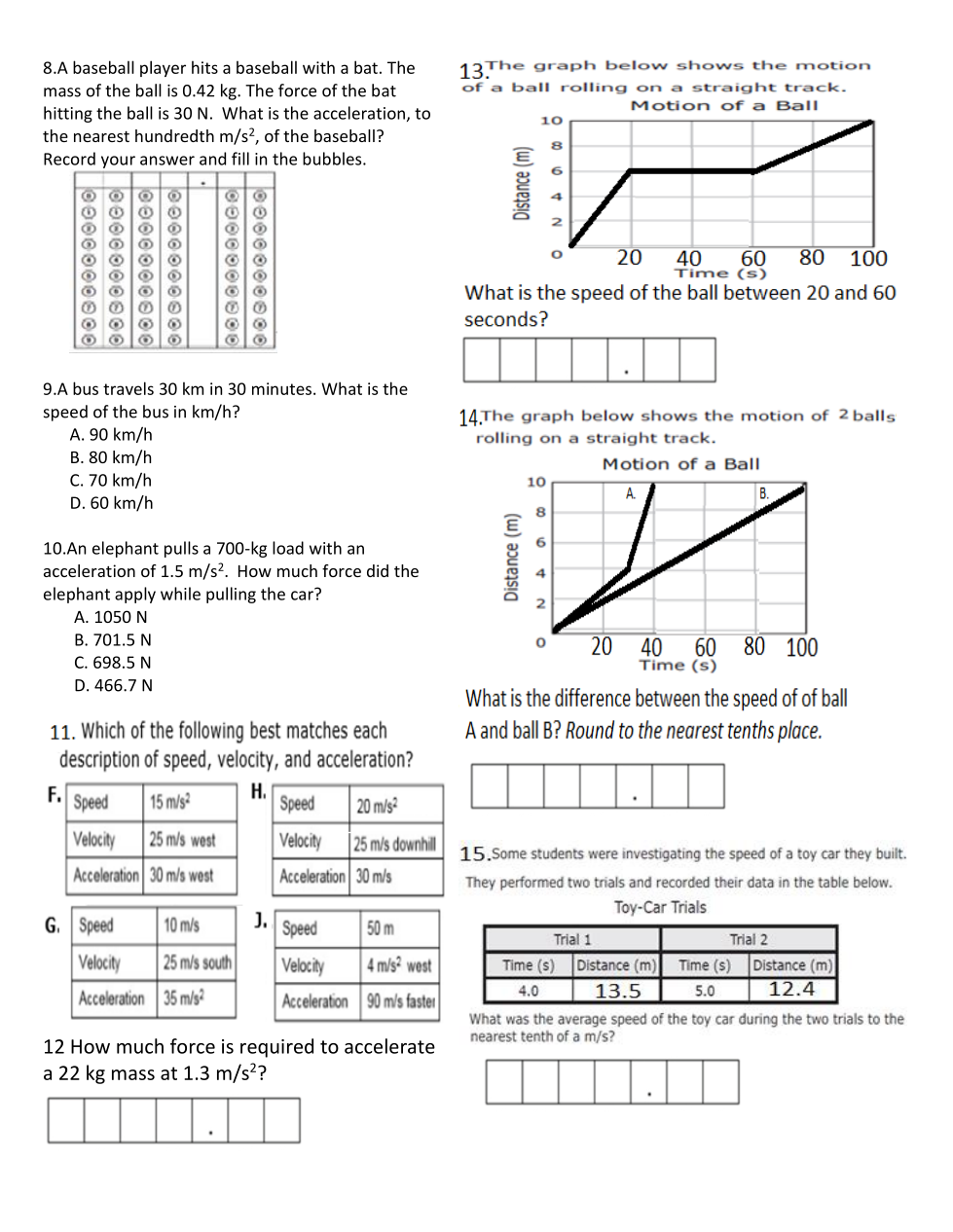 .A baseball player hits a baseball with a bat. The mass of the ball is 0.42 kg. The force of the bat hitting the ball is 30 N. What is the acceleration, to the nearest hundredth m/s2, of the baseball?
