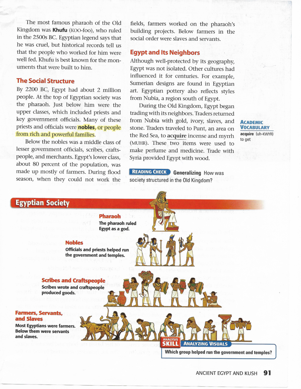 According to this text and graphic below, who made up the upper class in Egypt?