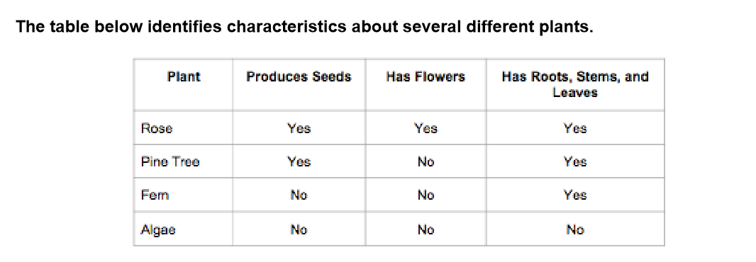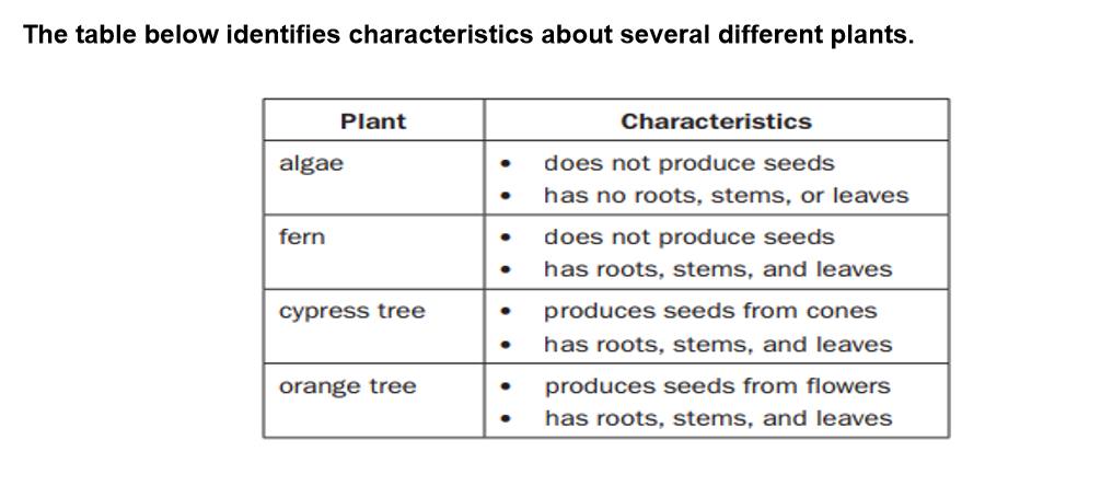 plants described below could be classified in the same group as one of the plants in the table?