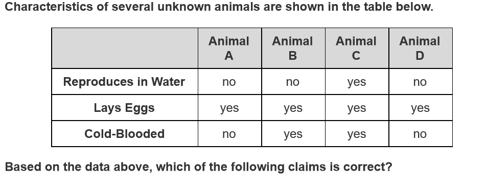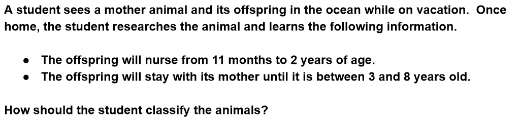How should the student classify the animals?