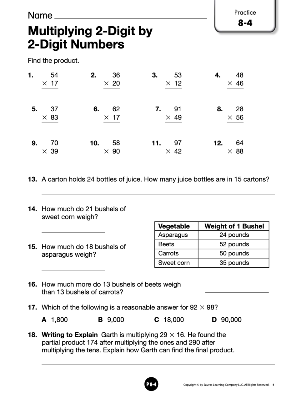 8-4 Multiplying 2-Digits by 2-Digits