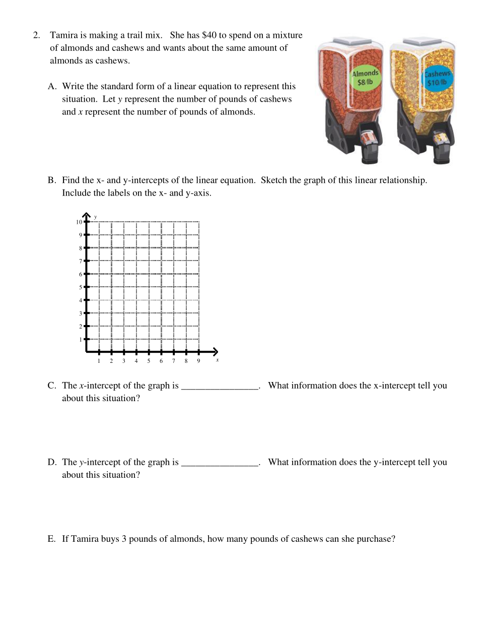 If Tamira buys 3 pounds of almonds, how many pounds of cashews can she purchase? (write as decimal)