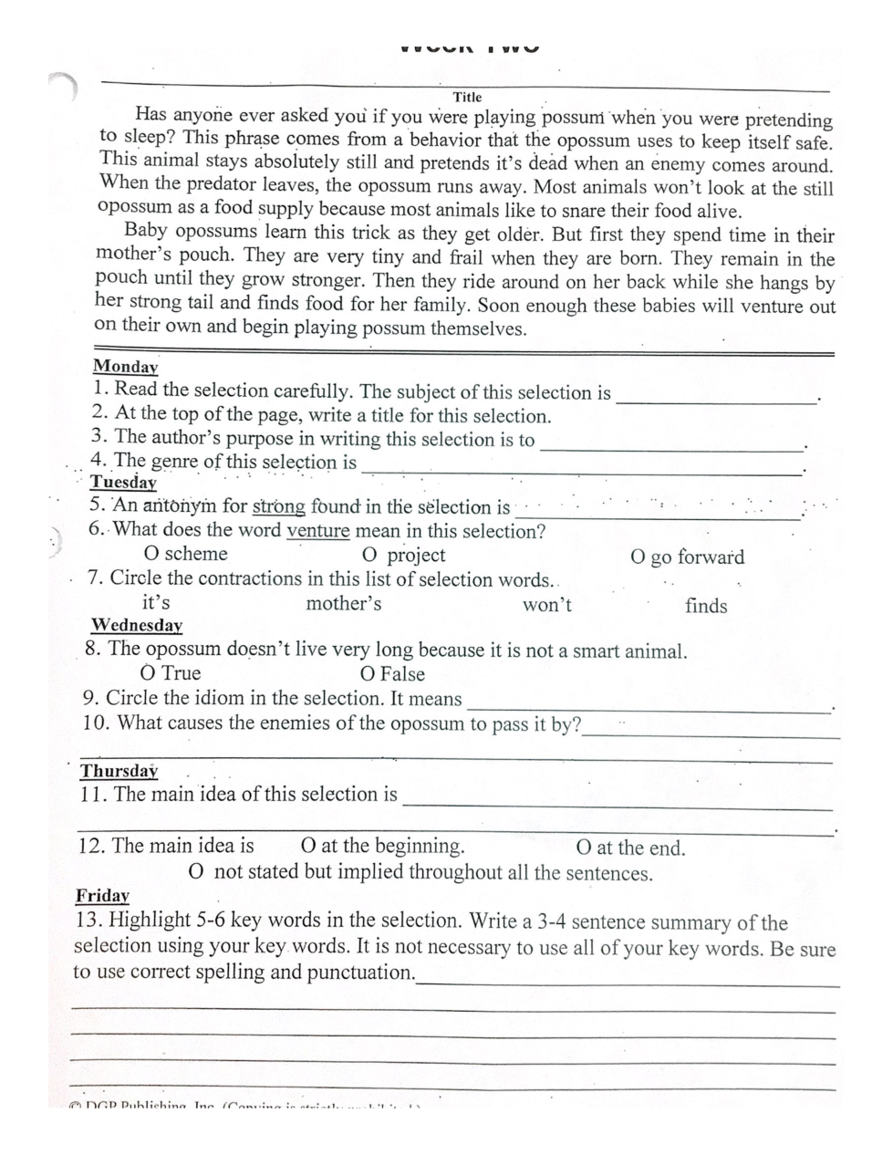 Write a 3 or 4 sentence summary for the selection. DO NOT COPY DIRECTLY FROM THE TEXT!!