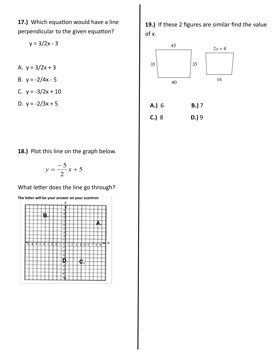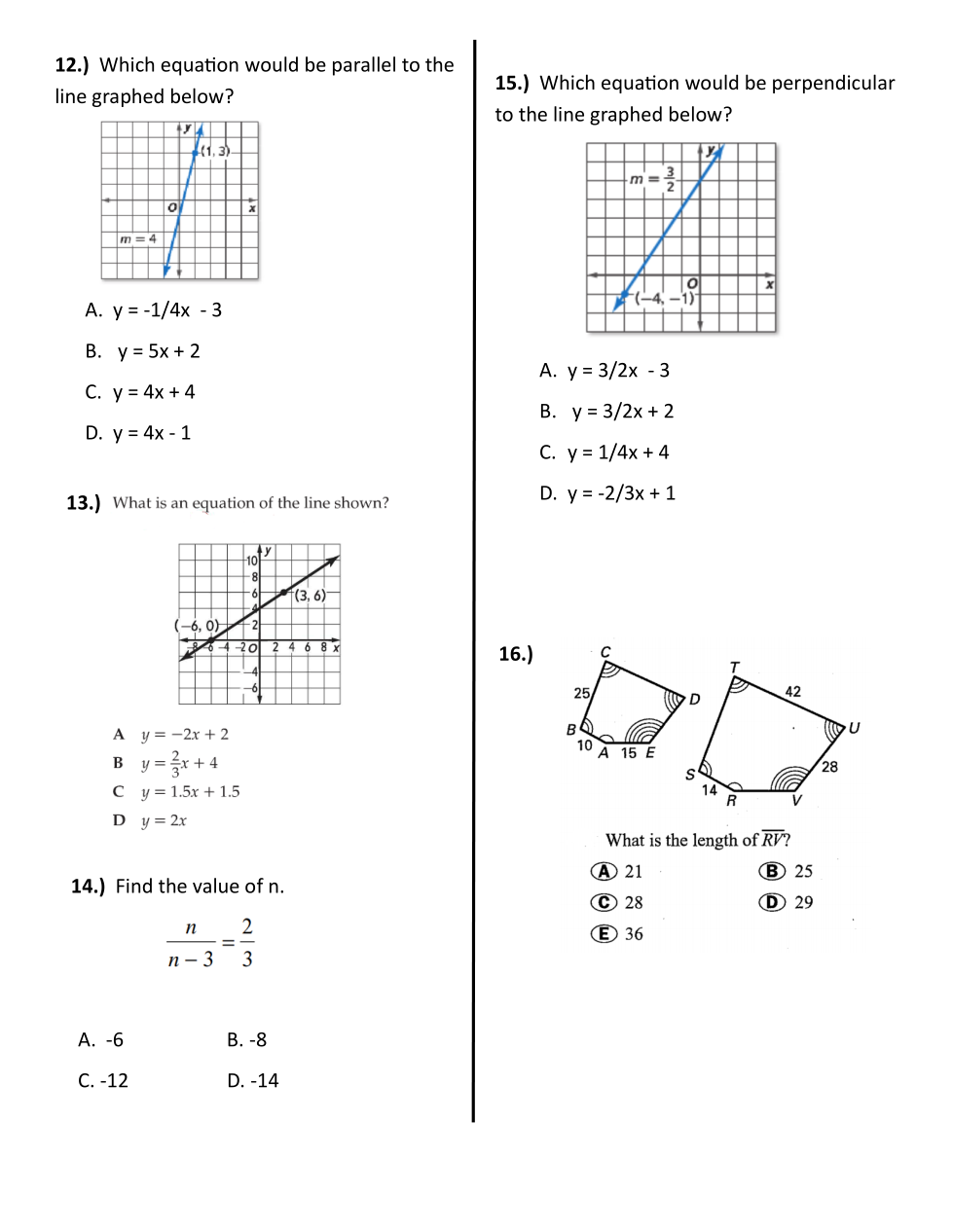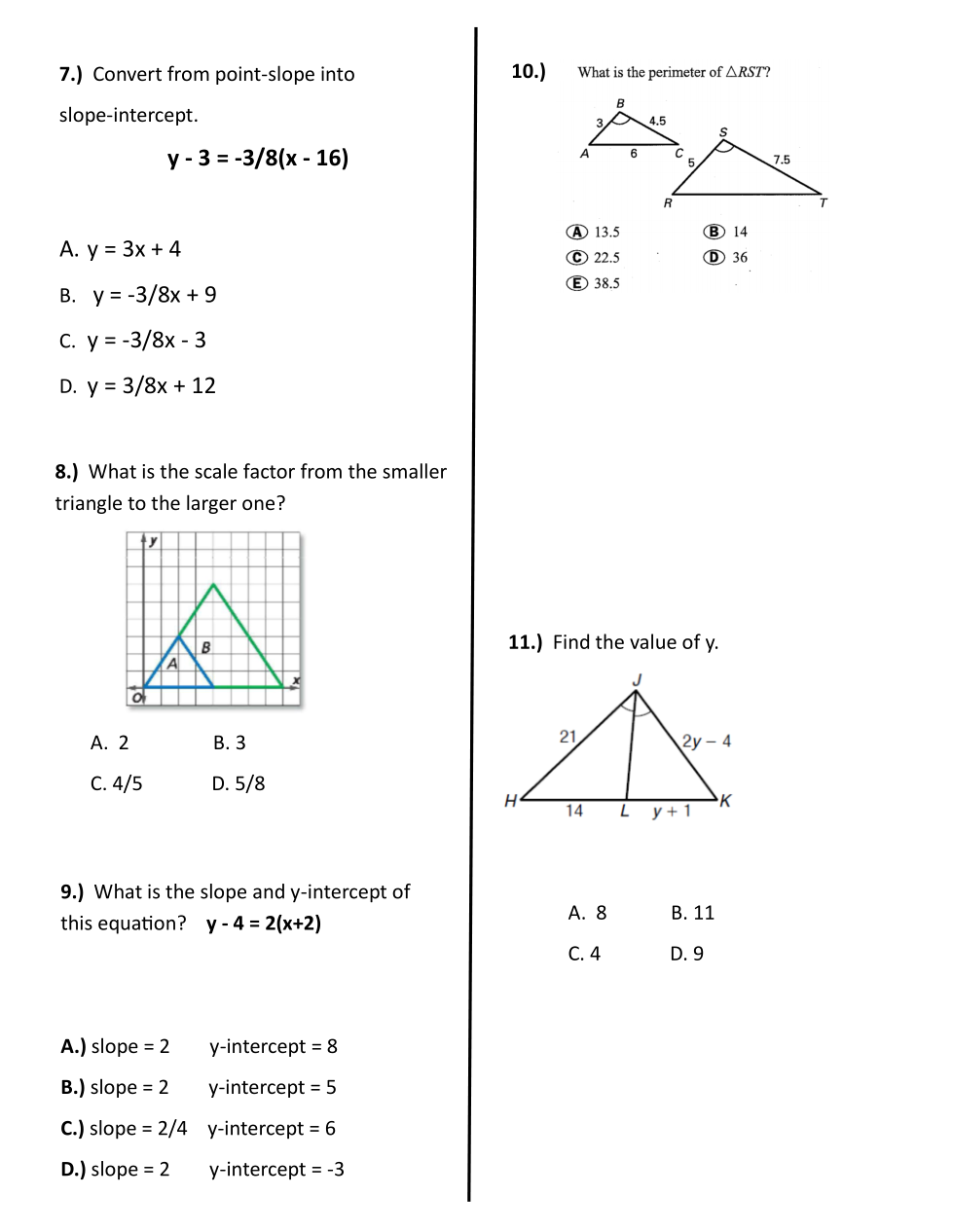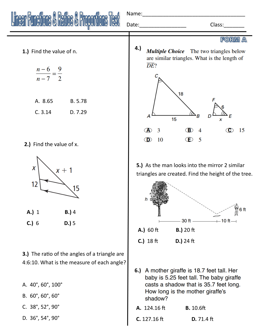 11/16 TEST EE Linear Function & Ratio and Proportions