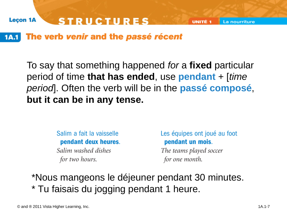 Pendant (during) le cours de français, nous avons beaucoup appris!