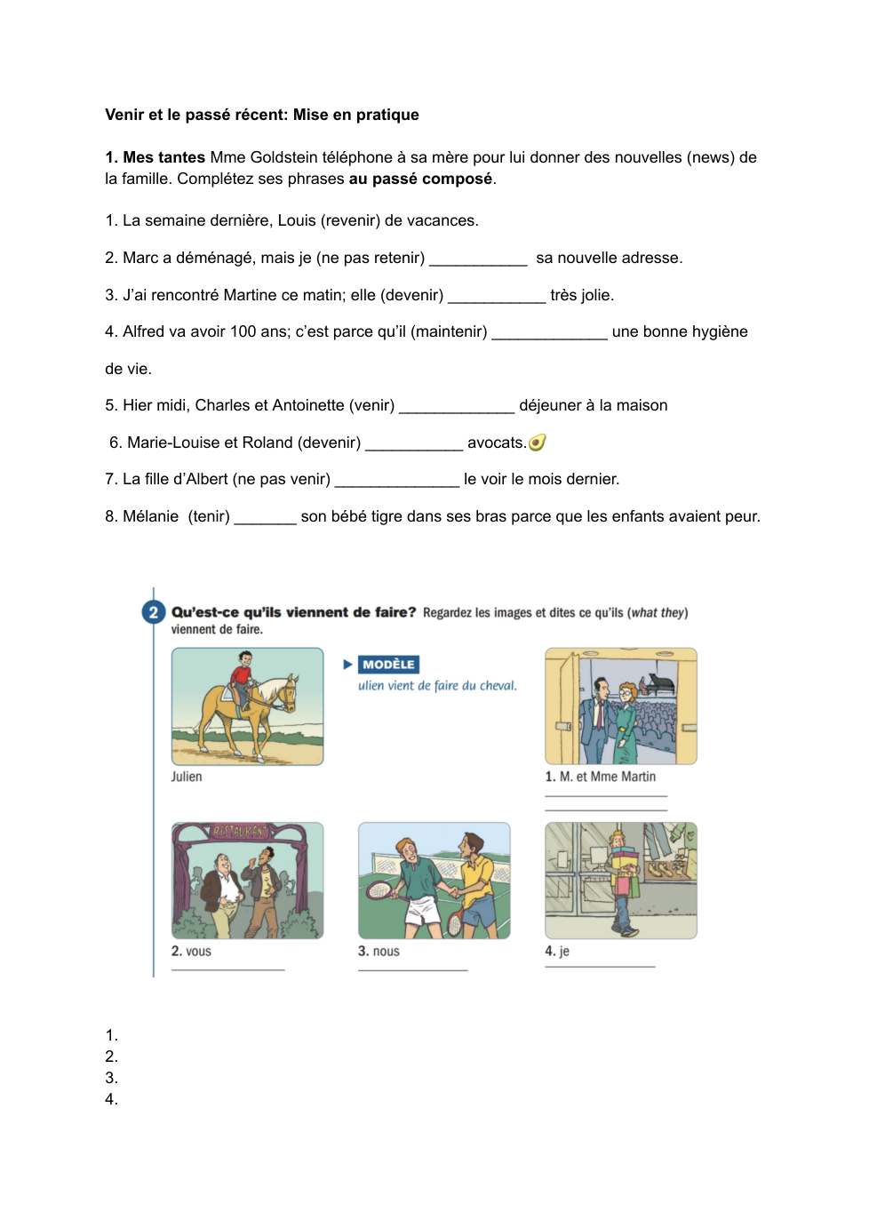 French II Honors - venir et le passé récent