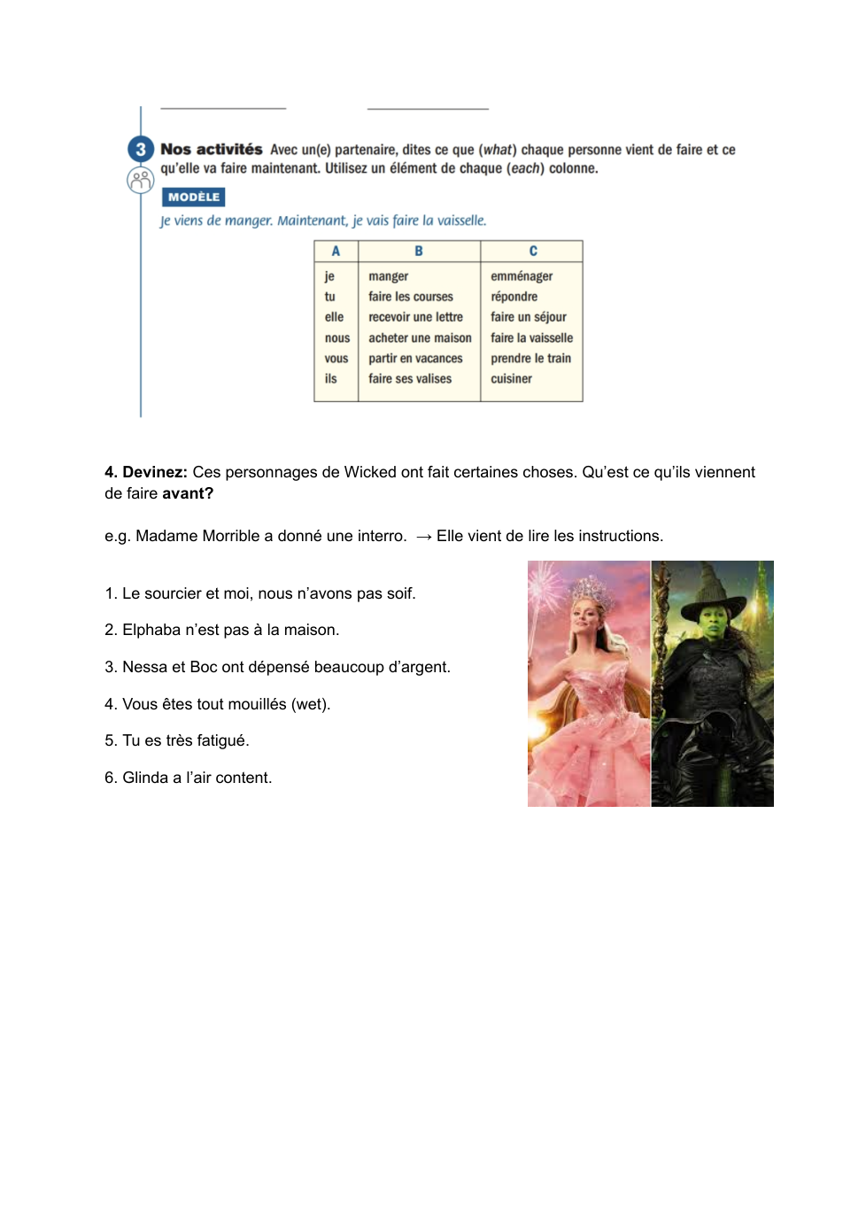 Qu’est-ce que tu viens de faire ? Qu’est-ce que tu ne viens pas de faire ? Qu’est-ce que tu vas faire bientôt (soon) ?