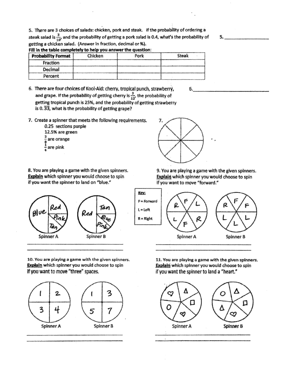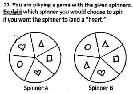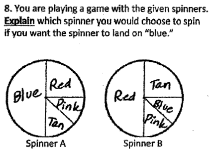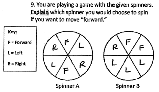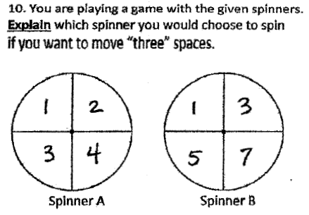 Choose the correct spinner. Explain why you chose the spinner on your paper.
