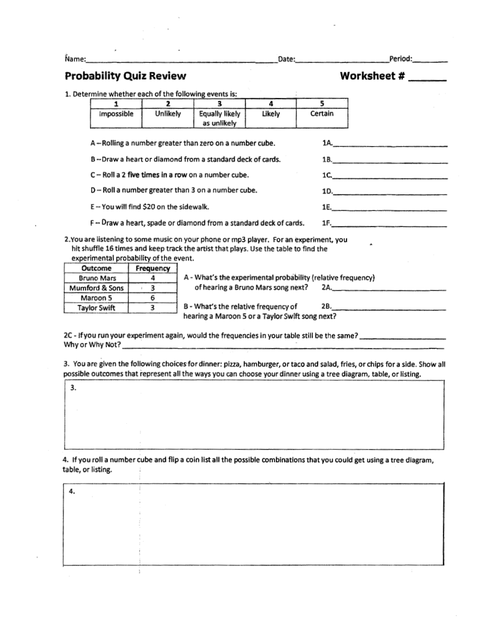 2A - What's the experimental probability (relatvie frequency) of hearing a Bruno Mars song next?