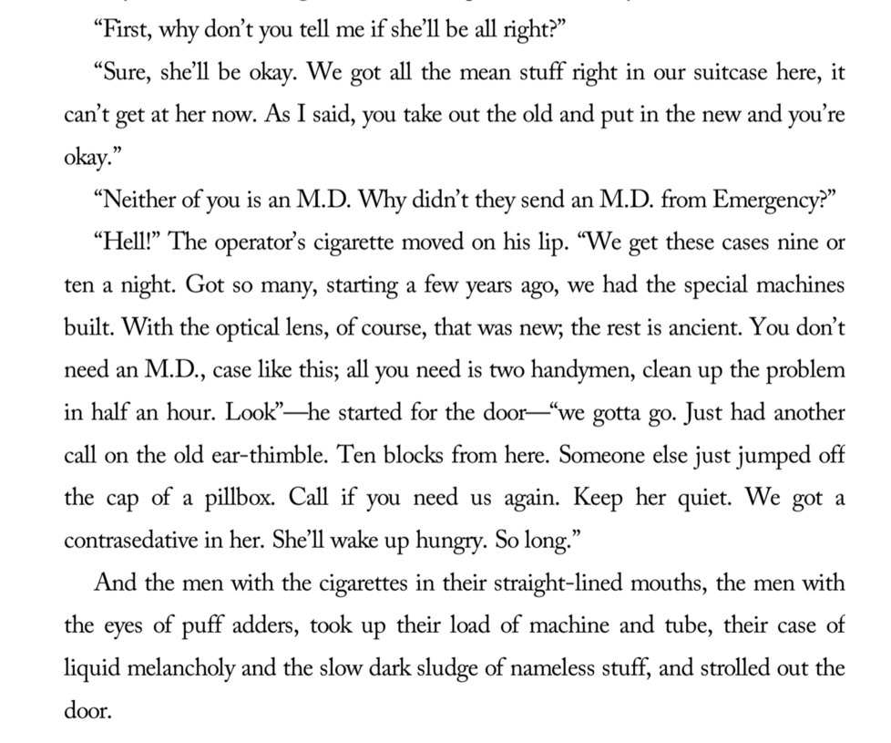"He wanted above all, like the old joke, to shove a marshmallow on a stick in the furnace, while the flapping pigeon-winged books died on the porch and lawn of the house." What literary device is being used here?