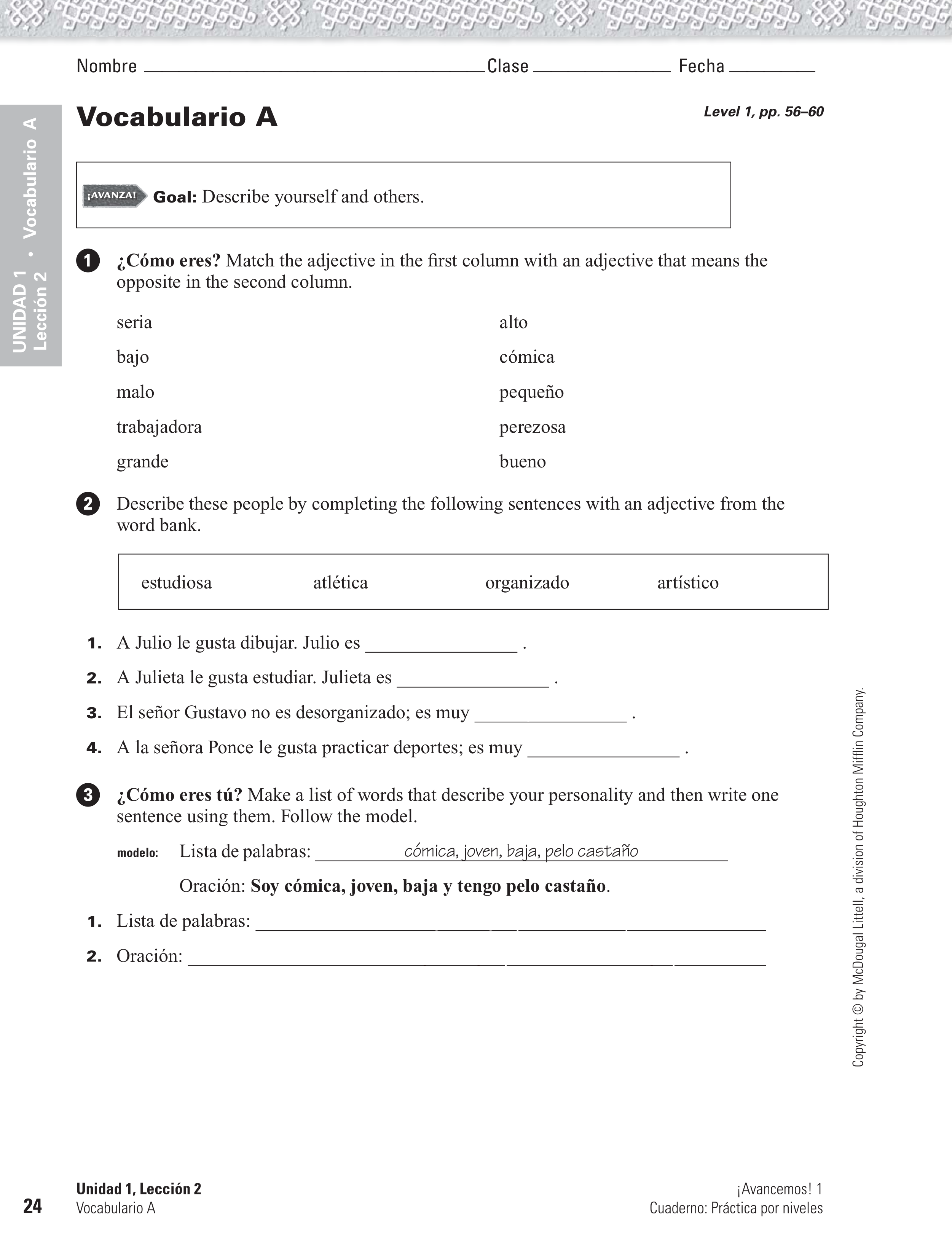 1: U1L2: Vocabulario A
