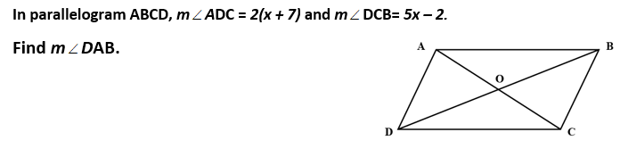 Use your answer from #4 for x. Find the measure of angle DAB. Show your work in the indicated box.