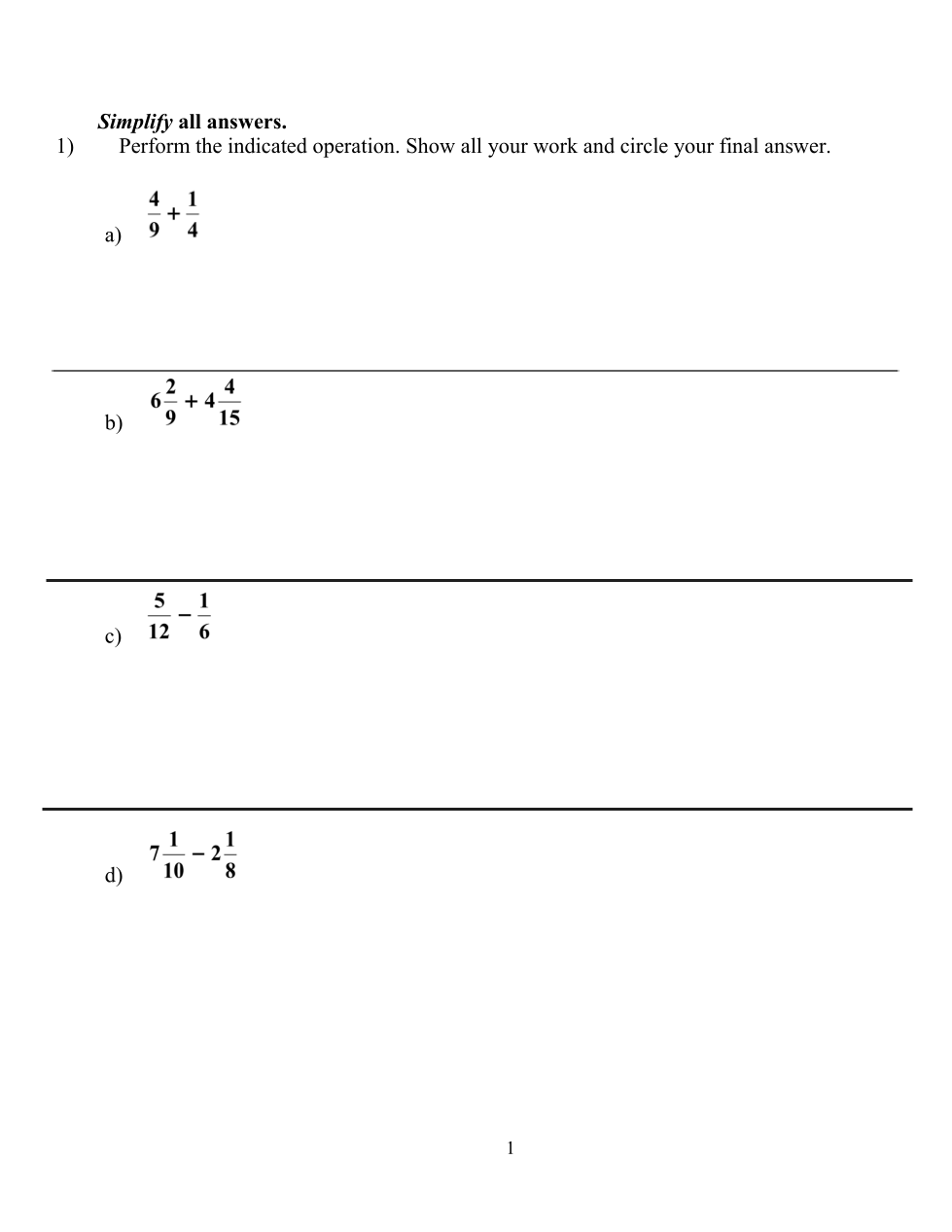 Mini Unit Fraction Review