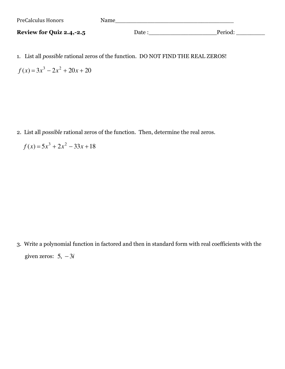 Write the polynomical function in factored form with 5 and -3i as given zeros of f(x).