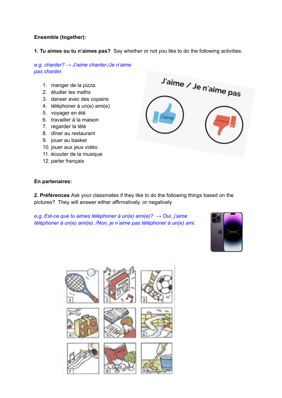 J'aime dîner au restaurant avec ma famille, mais je n'aime pas étudier. Je veux jouer aux jeux vidéo, mais je ne veux pas travailler. Je peux chanter, mais je dois étudier. Est-ce que tu veux jouer aux jeux vidéo avec moi samedi soir?