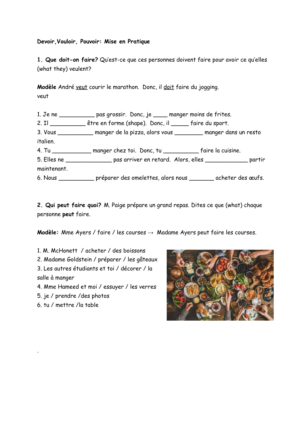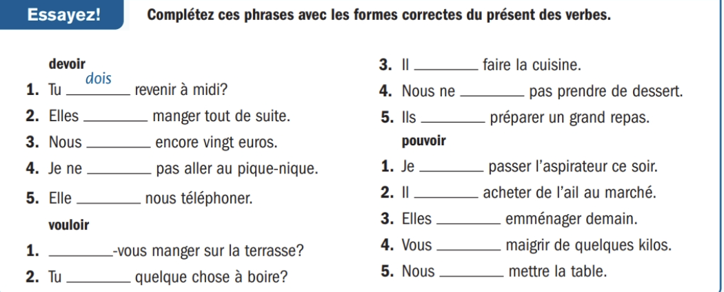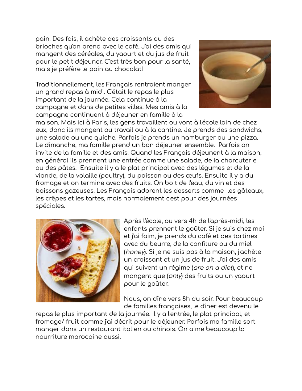 À 4h30, Alexandra a pu faire du jogging. Après, à 5h, elle a voulu manger le petit déjeuner. Ensuite, à 5h30, elle a voulu visiter son restaurant. Puis, à 9h, elle a dû aller au supermarché. Mais, à 10h30, elle a dû faire la cuisine. Après ça, à 13h, elle a pu servir les client. Alors, à 17h30, elle pu dormir. Mais à 18h, elle dû faire la cuisine. Mais, le sous-chef a dû faire la cuisine parce qu'elle était fatiguée et malade.