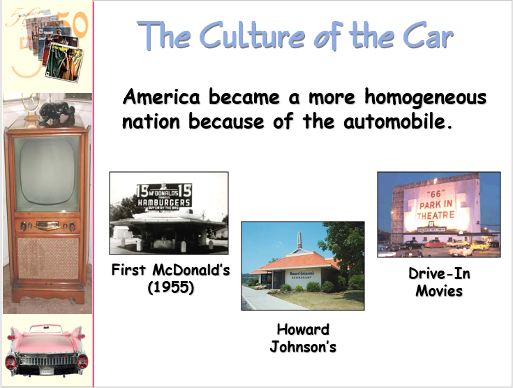 Spurred by advertizing the car culture was also fueled by-