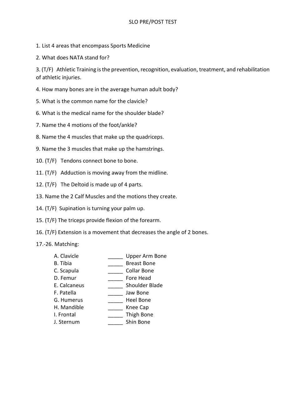 Athletic Training is the prevention, recgonition, evaluation, treatment, and rehabilitation of athletic injuries.