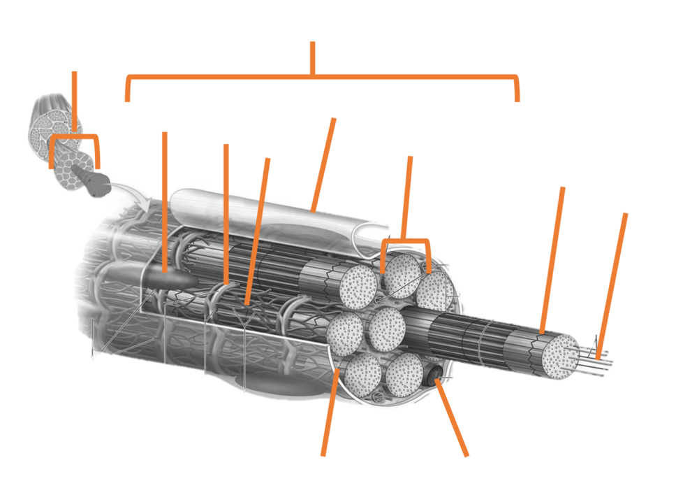 The many tubes that fill a muscle fiber, and themselves are made up of long strands of protein filaments
