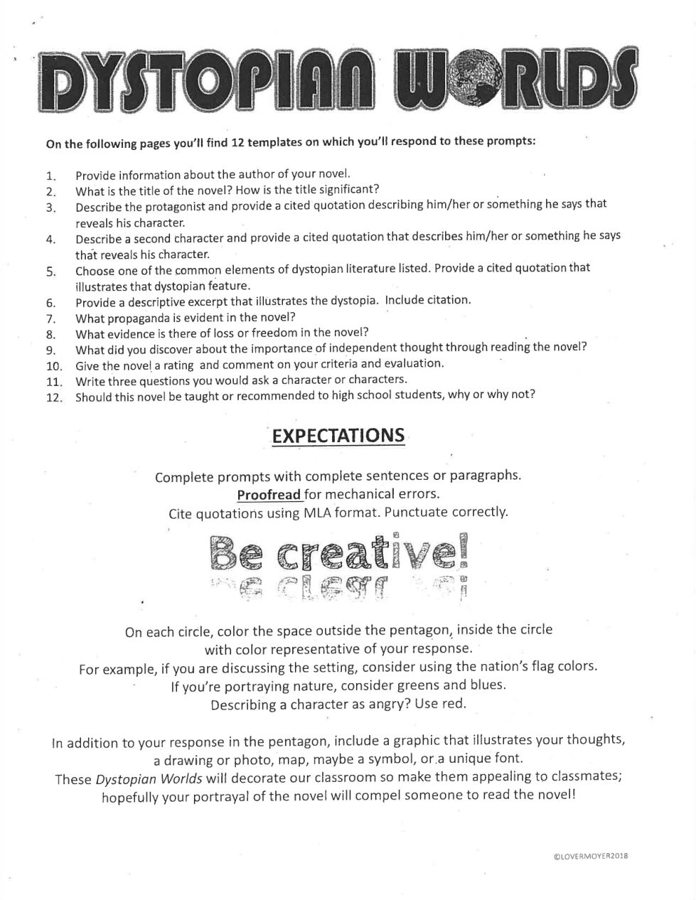 This electronic copy is for emergency purposes only. Please use the paper copy of the attached Dystopian Worlds Dodecahedron packet. If you were not at school to get a copy of the packet, I left copies in the main office with Mrs. Church.