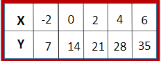 Find the slope of the line from a table.