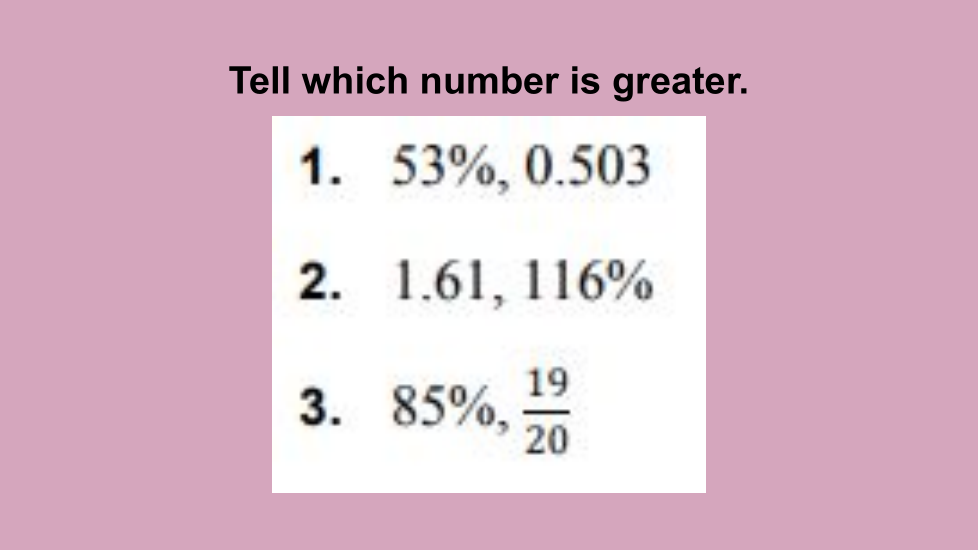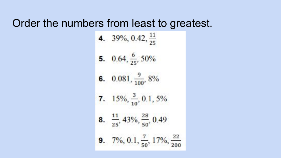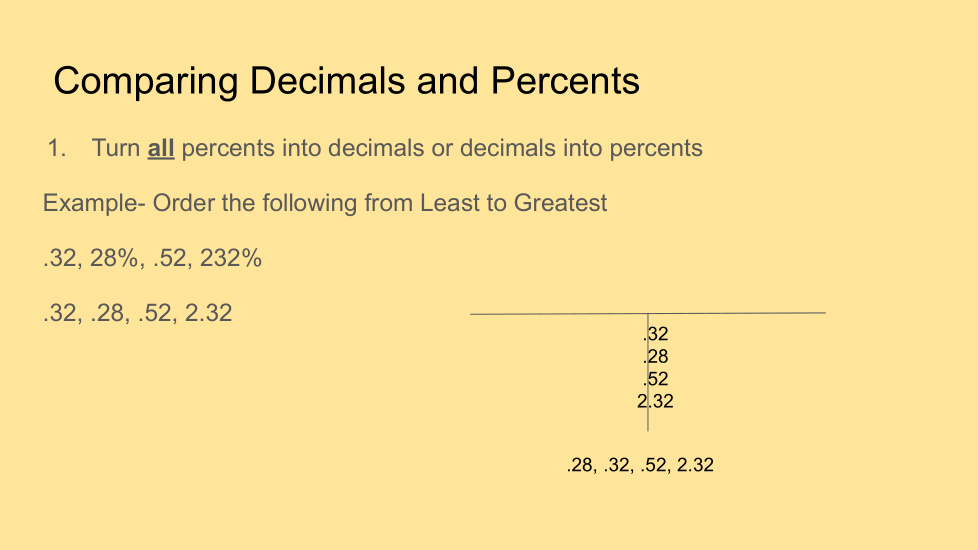Comparing ordering decimal and percents