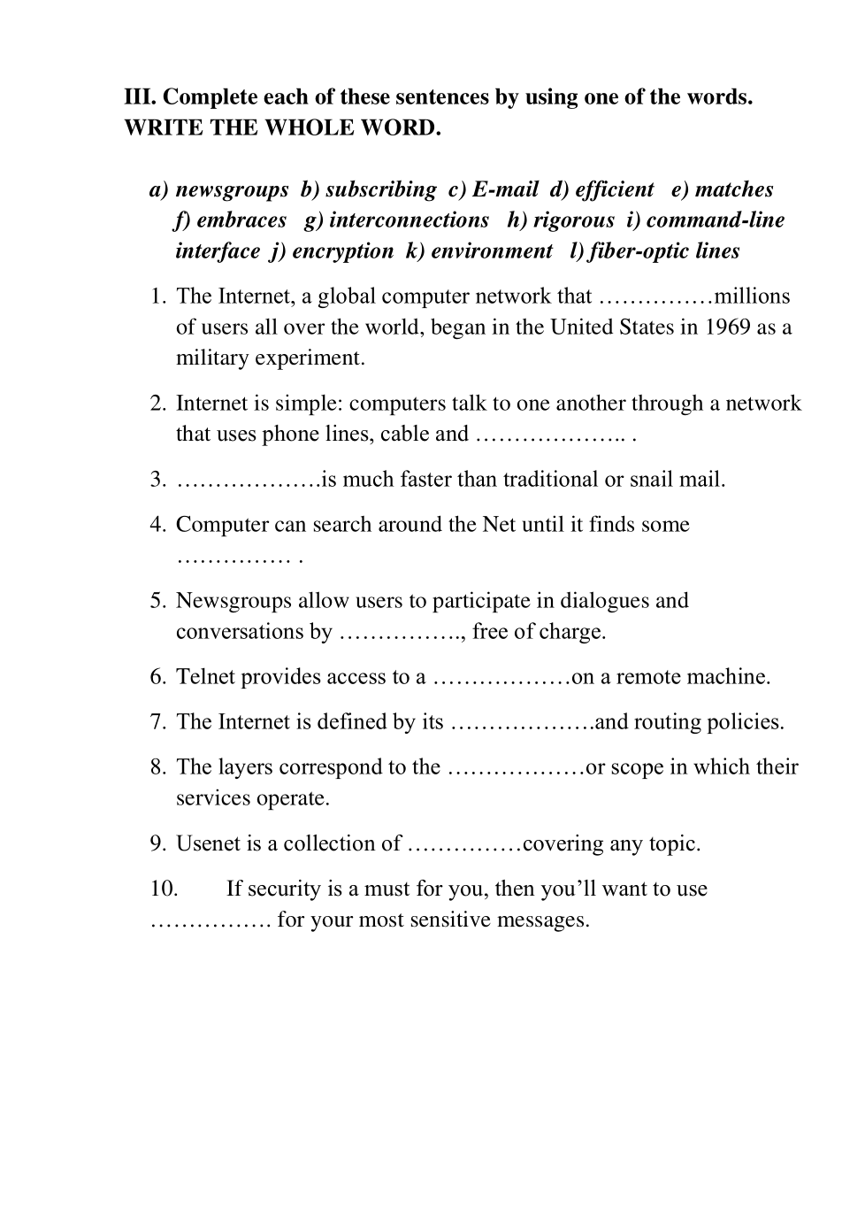 The Internet, a global computer network that ……………millions of users all over the world, began in the United States in 1969 as a military experiment.