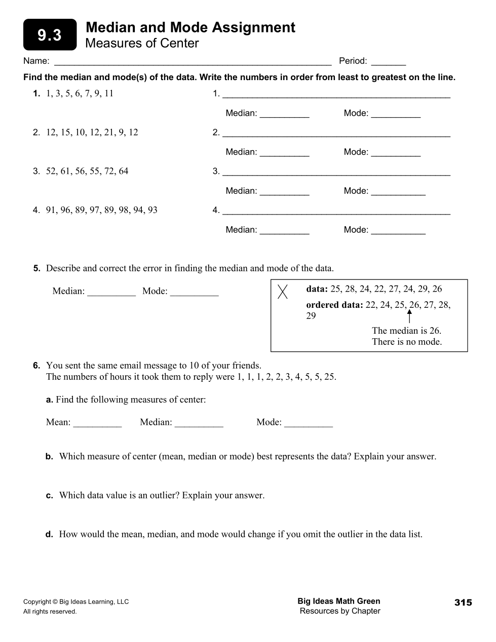 How would the mean, median, and mode would change if you omit the outlier in the data list.